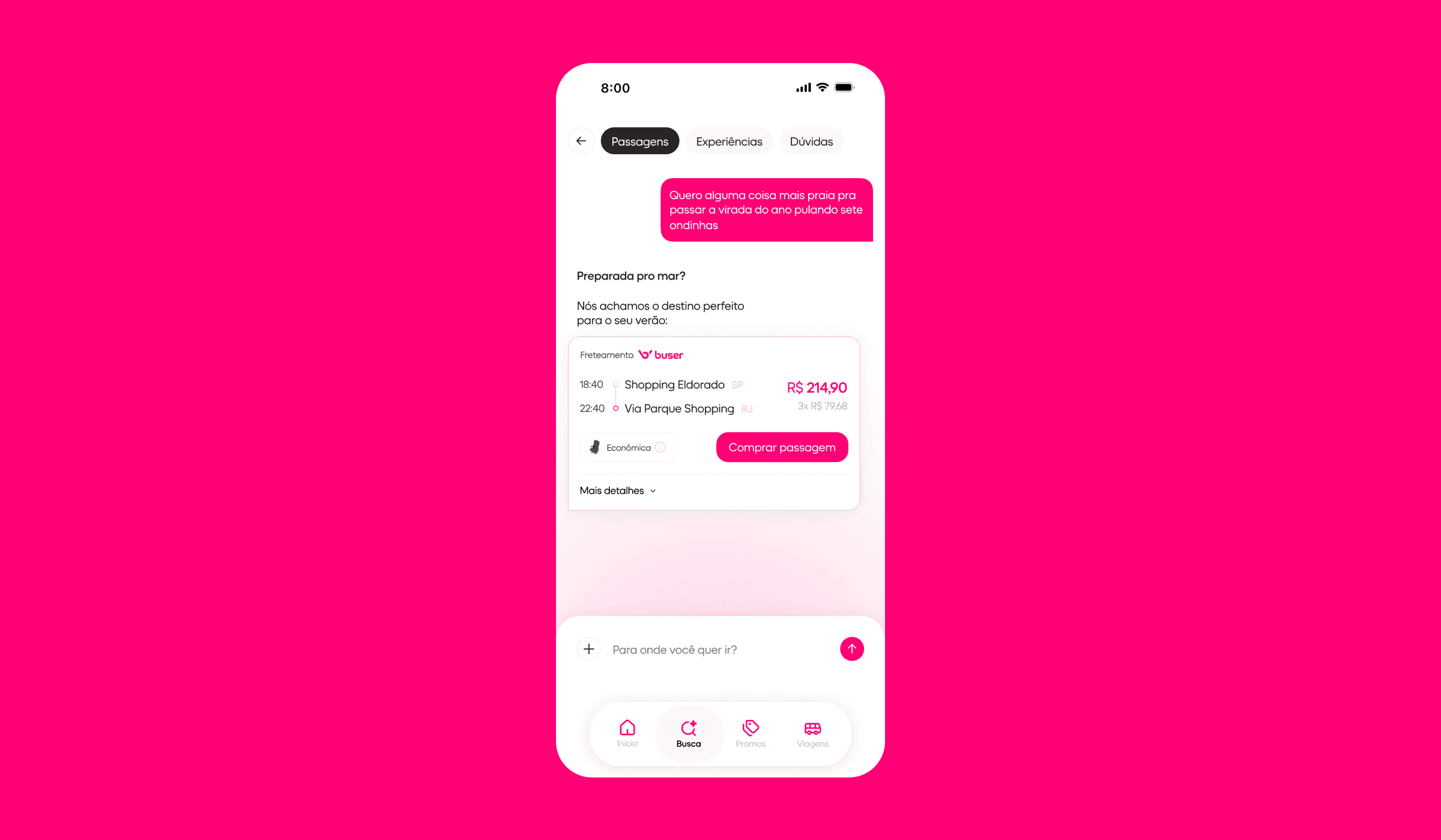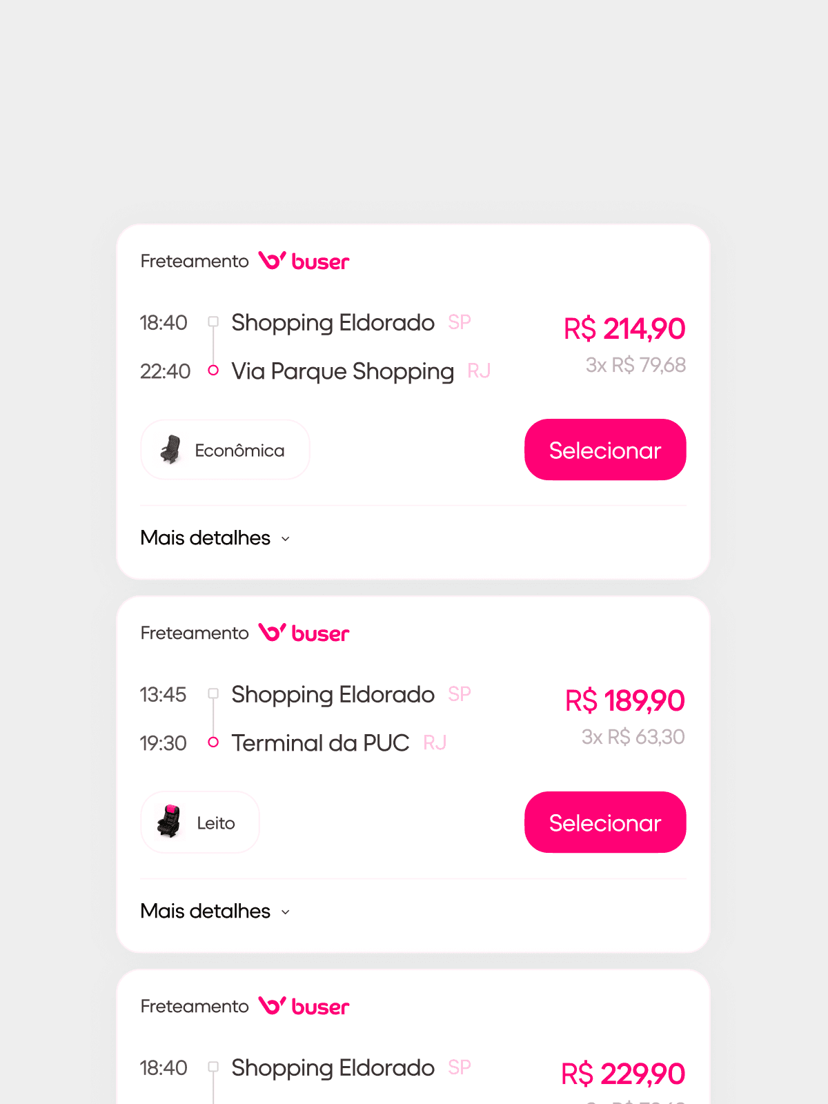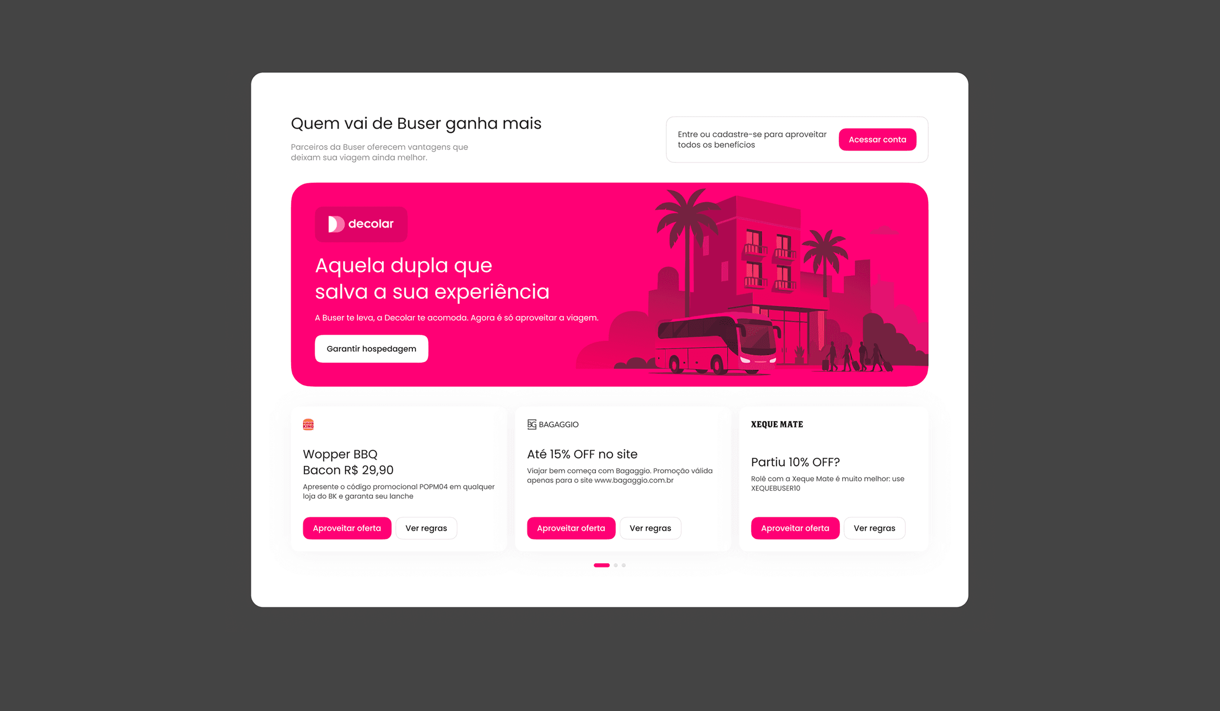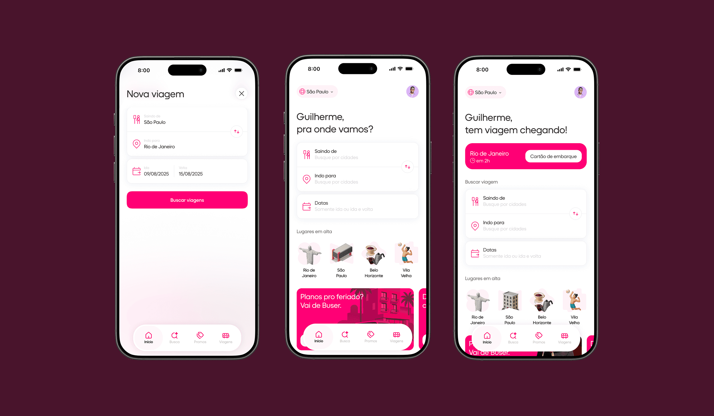 Na Buser, atuei como Product Designer em iniciativas estratégicas voltadas à evolução da experiência digital da plataforma, com foco em crescimento, conversão e consistência de marca ao longo da jornada do usuário.