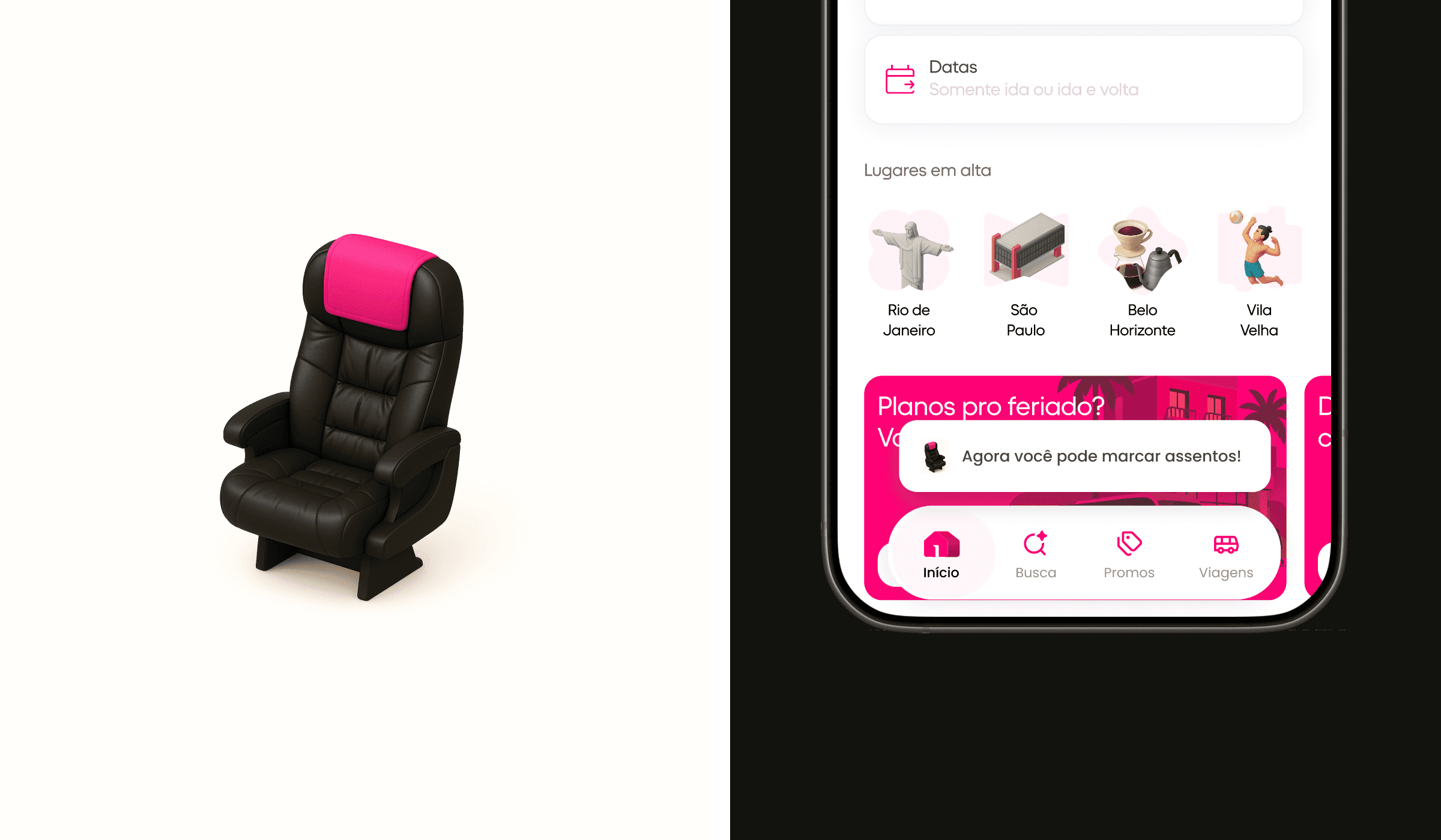 Além dos fluxos de produto, contribuí para iniciativas de branding aplicado ao produto, garantindo coerência visual, clareza de comunicação e escalabilidade em campanhas, landing pages e experiências promocionais dentro do app e em superfícies digitais do ecossistema Buser.