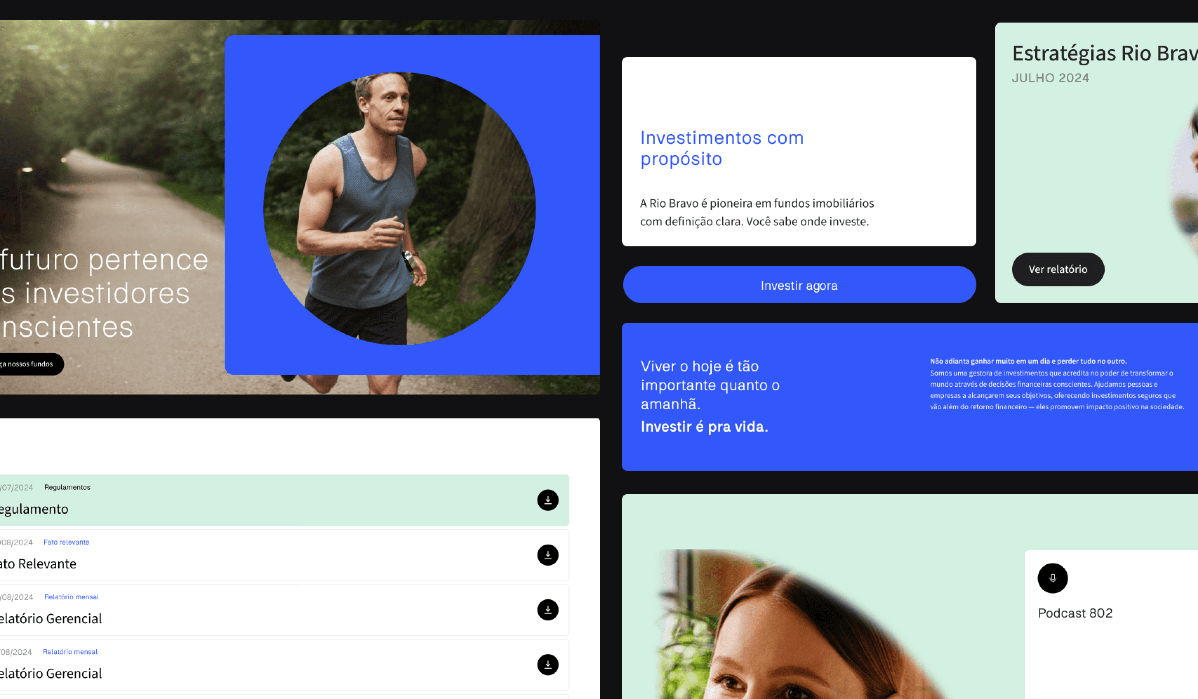 Na Rio Bravo Investimentos, atuei como Product Designer em projetos voltados à evolução da experiência digital de produtos financeiros, com foco em clareza, confiança e tomada de decisão em contextos de alta complexidade.